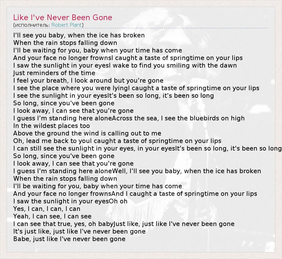 ГлавнаяИсполнителиRobert PlantLike I've Never Been Gone