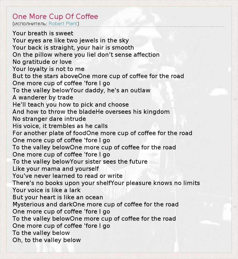 А как ты думаешь, о чем песня "One More Cup Of Coffee" ?