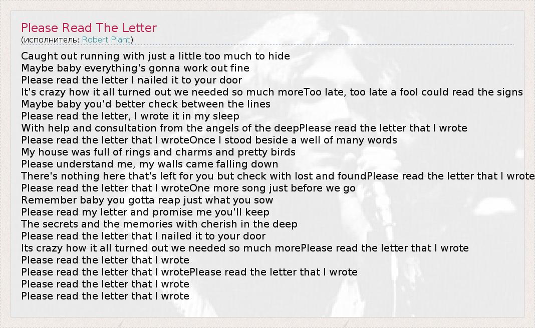 А как ты думаешь, о чем песня "Please Read The Letter" ?