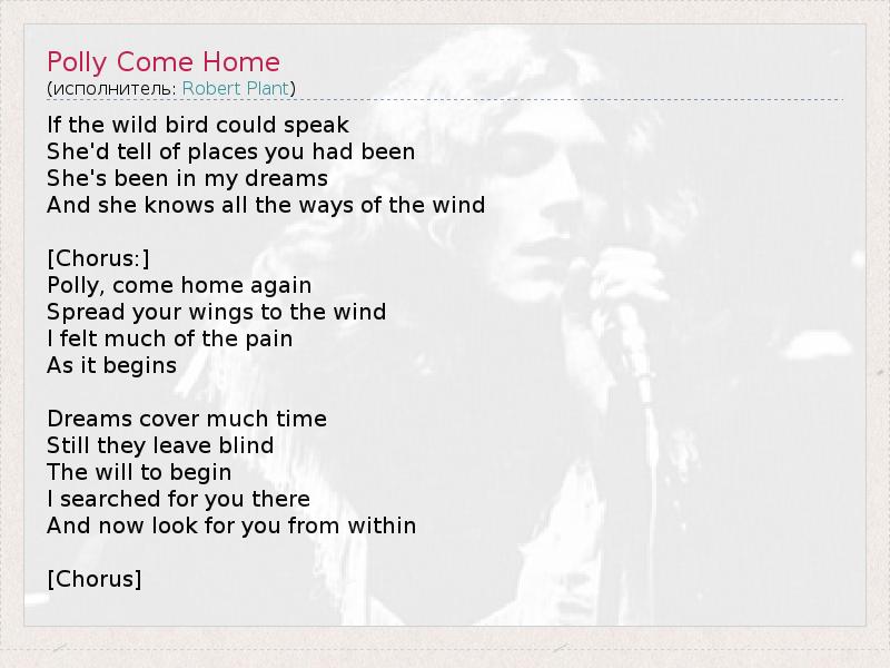 А как ты думаешь, о чем песня "Polly Come Home" ?