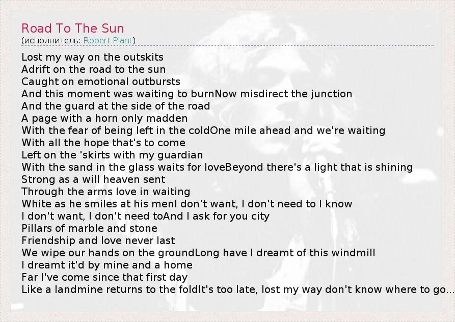 А как ты думаешь, о чем песня "Road To The Sun" ?