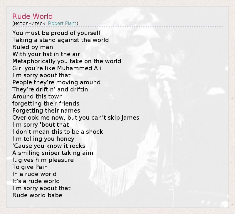 Это интересно:Роберт Энтони Плант (англ. Robert Anthony Plant, 20 августа 1948, Уэст-Бромидж, Стаффордшир, Англия) — британский рок-вокалист, известный прежде всего участием в Led Zeppelin. После распада группы Плант начал успешную сольную карьеру, которая продолжается по сей день. Роберт Плант — кавалер Ордена Британской империи (CBE).Великолепная четвёрка проработала вместе 12 лет, но смерть барабанщика послужила... продолжение