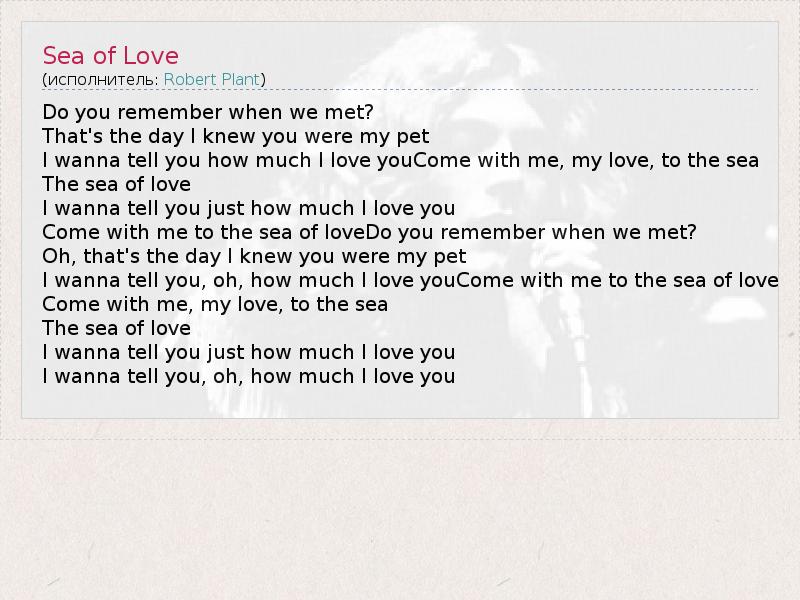 А как ты думаешь, о чем песня "Sea of Love" ?