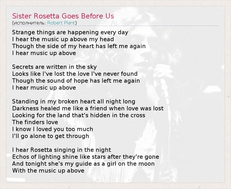 А как ты думаешь, о чем песня "Sister Rosetta Goes Before Us" ?