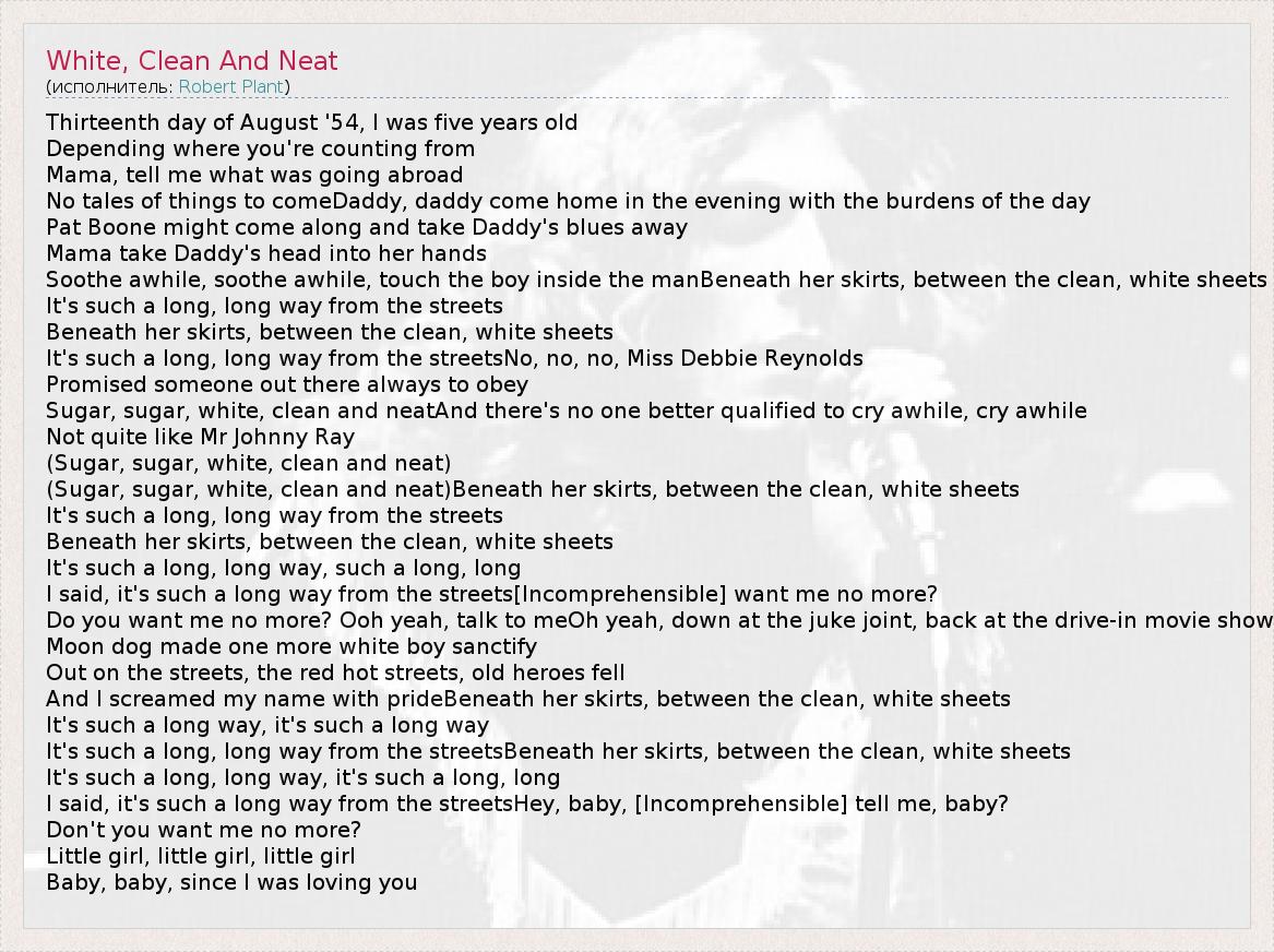 А как ты думаешь, о чем песня "White, Clean And Neat" ?
