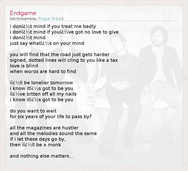 А как ты думаешь, о чем песня "Endgame" ?
