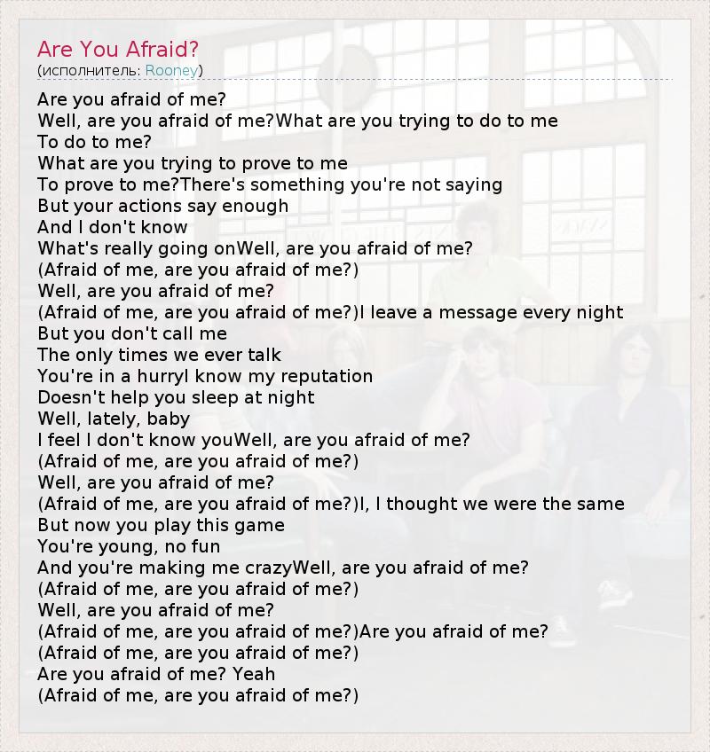 (Afraid of me, are you afraid of me?)Are you afraid of me?