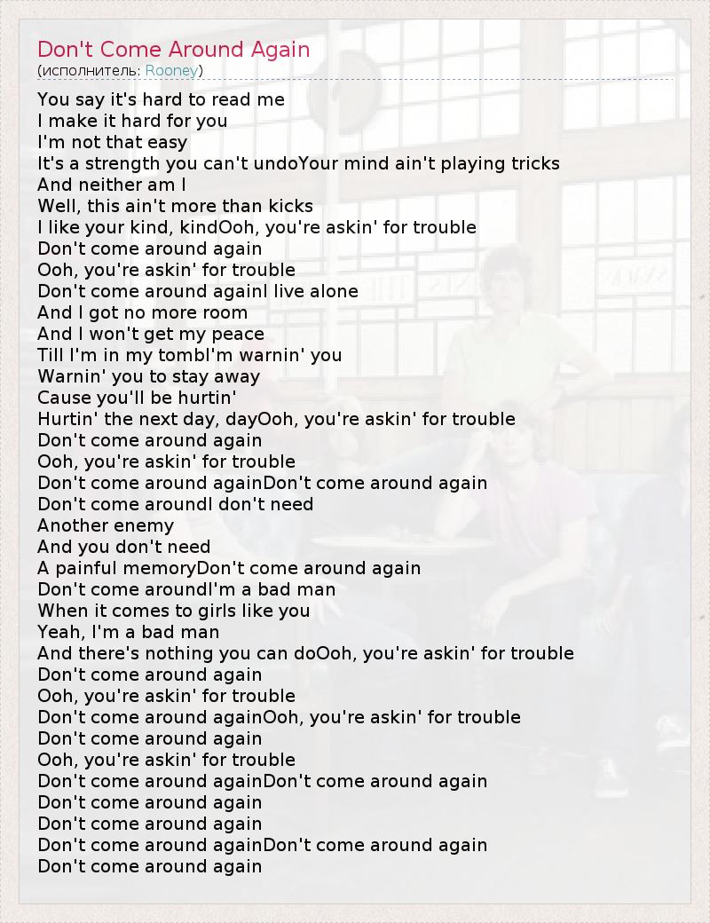 ГлавнаяИсполнителиRooneyDon't Come Around Again