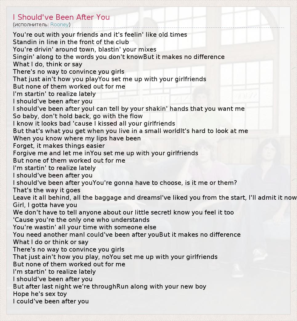 ГлавнаяИсполнителиRooneyI Should've Been After You