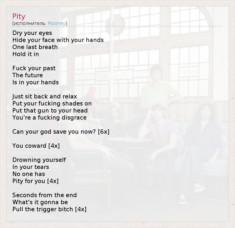 Это интересно:Rooney - американская рок-группа родом из Лос-Анджелеса. Название группы, которая записывается на лейбле Geffen, является фамилией одного из персонажей фильма "Феррис Бьюллер берёт выходной" Эда Руни, которого играет Джефри Джонс. Их музыкальный стиль - это отголоски той музыки, что звучала последние сорок лет, их часто сравнивают с Beatles, The Cars или Blur. На них оказали влияние The Kinks,... продолжение