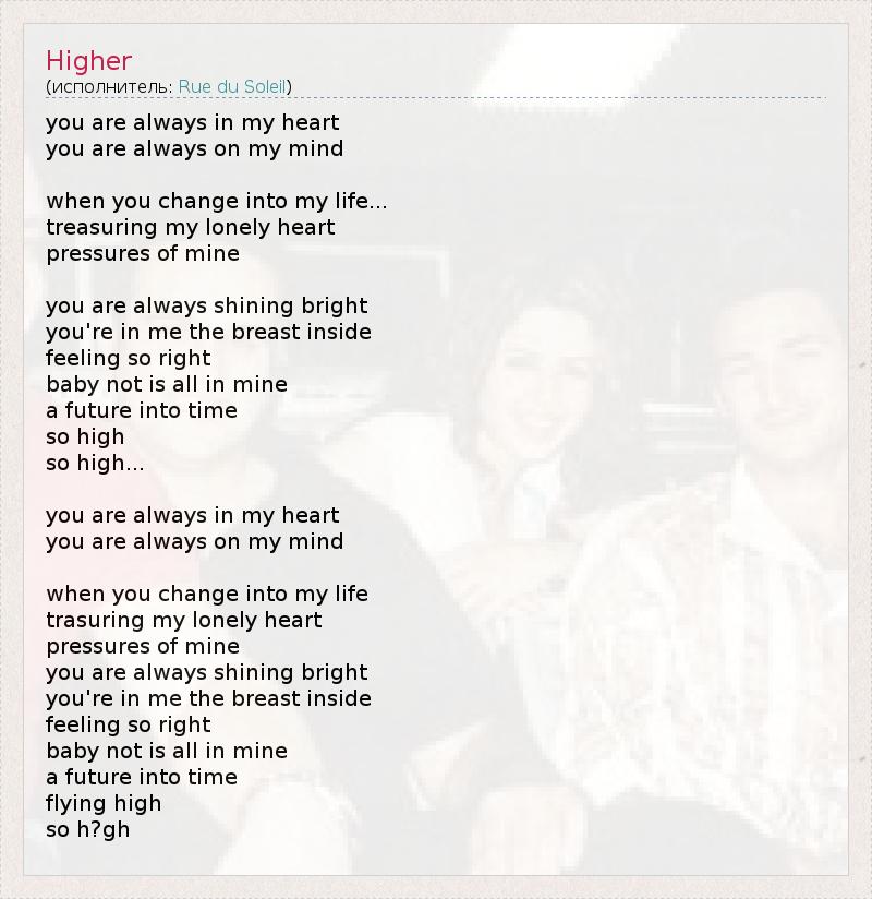 А как ты думаешь, о чем песня "Higher" ?