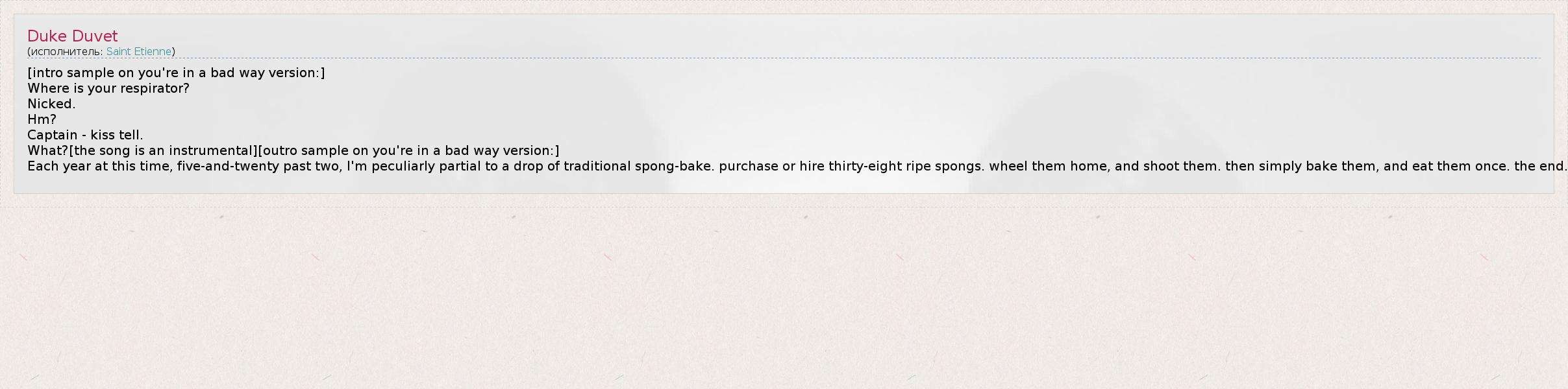 А как ты думаешь, о чем песня "Duke Duvet" ?
