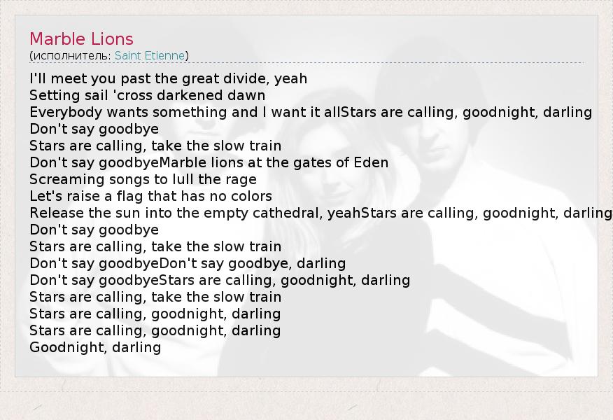 А как ты думаешь, о чем песня "Marble Lions" ?