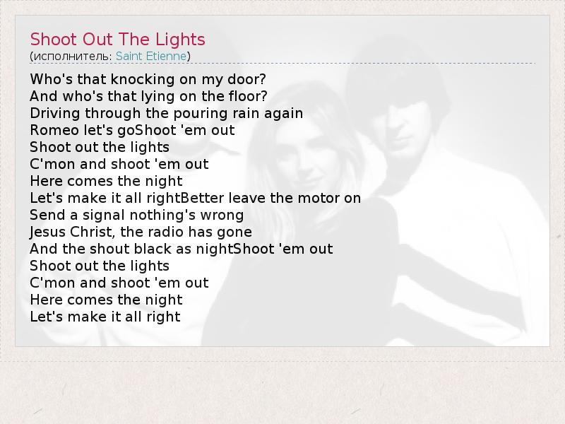 А как ты думаешь, о чем песня "Shoot Out The Lights" ?