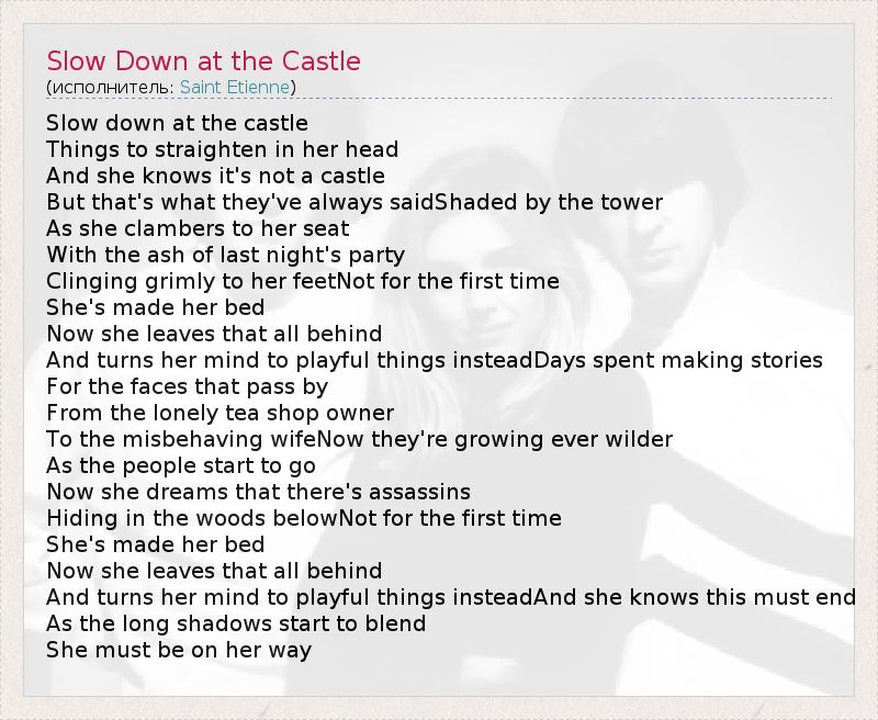 А как ты думаешь, о чем песня "Slow Down at the Castle" ?