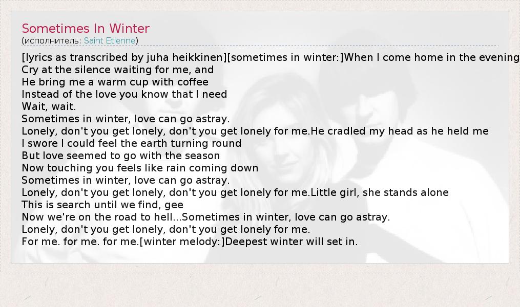 А как ты думаешь, о чем песня "Sometimes In Winter" ?