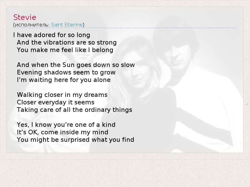 Это интересно:Трудно представить историю британской поп-музыки без «Saint Etienne». Их удивительная способность выпускать пластинки с настроением «шестидесятых» стала главной отличительной чертой группы. Вот уже десять лет «Saint Etienne» по праву занимают место самой стильной группы в Англии. «Музыка дизайнеров и арт-директоров» - такое определение «Saint Etienne» получили из уст одного журналиста. И действительно,... продолжение