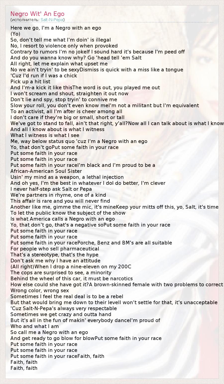 А как ты думаешь, о чем песня "Negro Wit' An Ego" ?