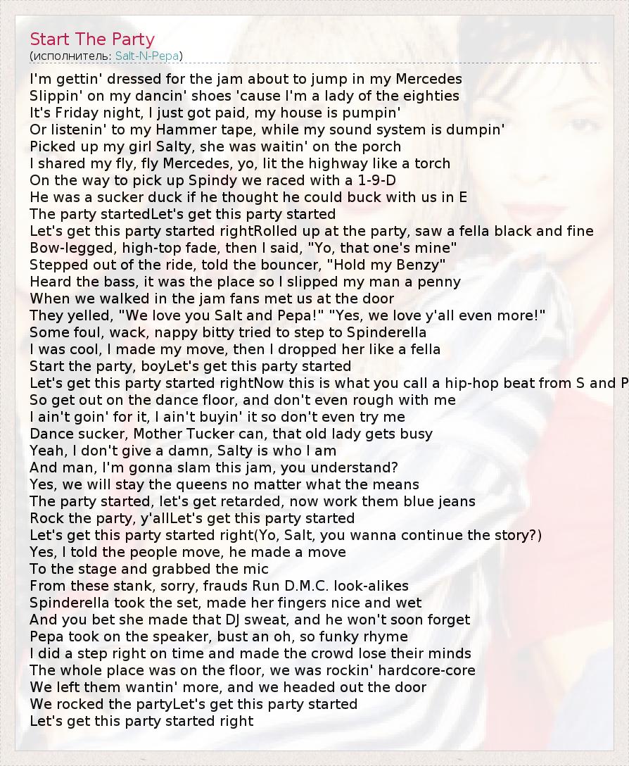 А как ты думаешь, о чем песня "Start The Party" ?