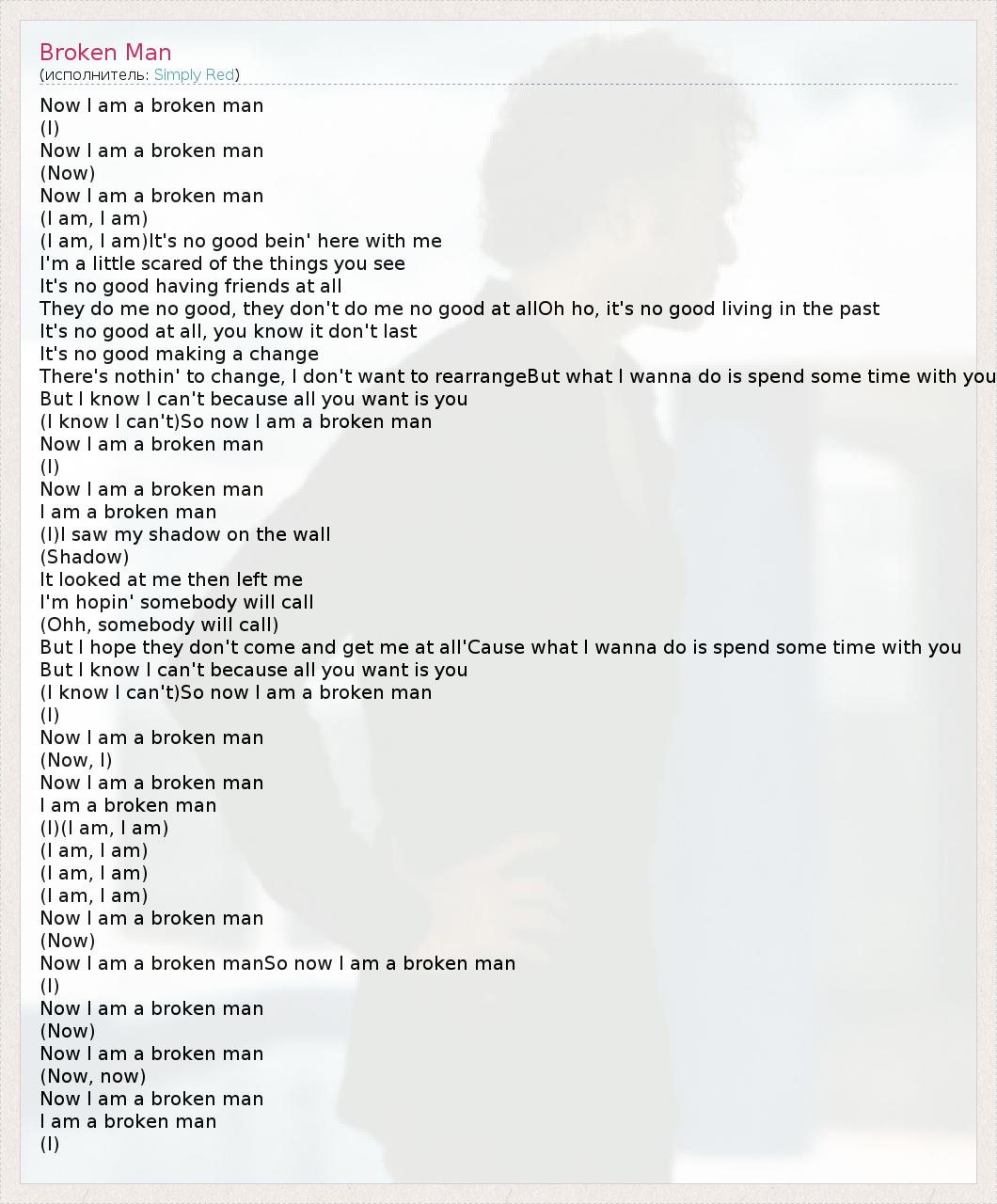 Now I am a broken manSo now I am a broken man