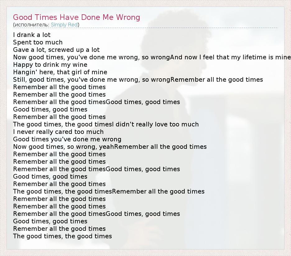 А как ты думаешь, о чем песня "Good Times Have Done Me Wrong" ?