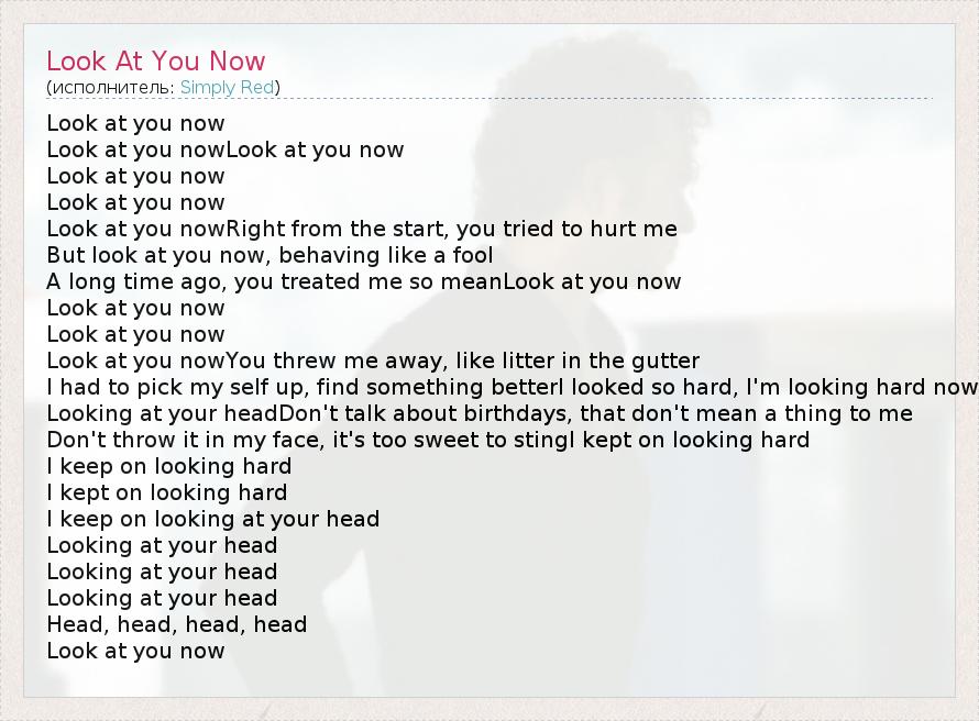 А как ты думаешь, о чем песня "Look At You Now" ?