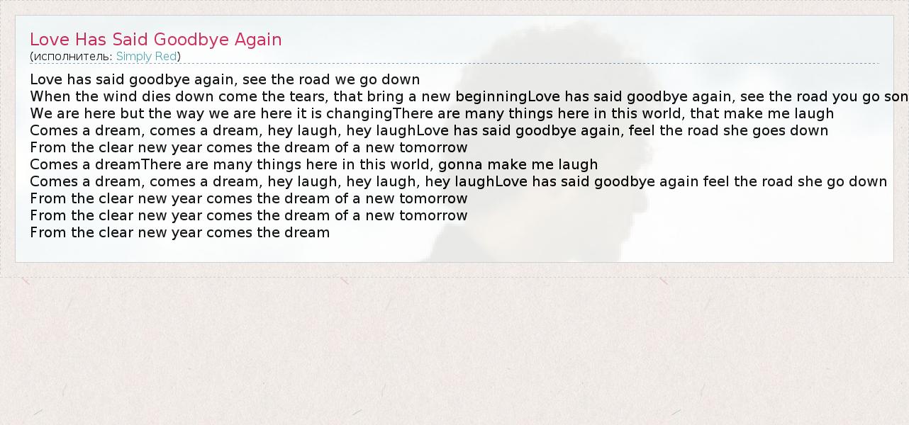 ГлавнаяИсполнителиSimply RedLove Has Said Goodbye Again