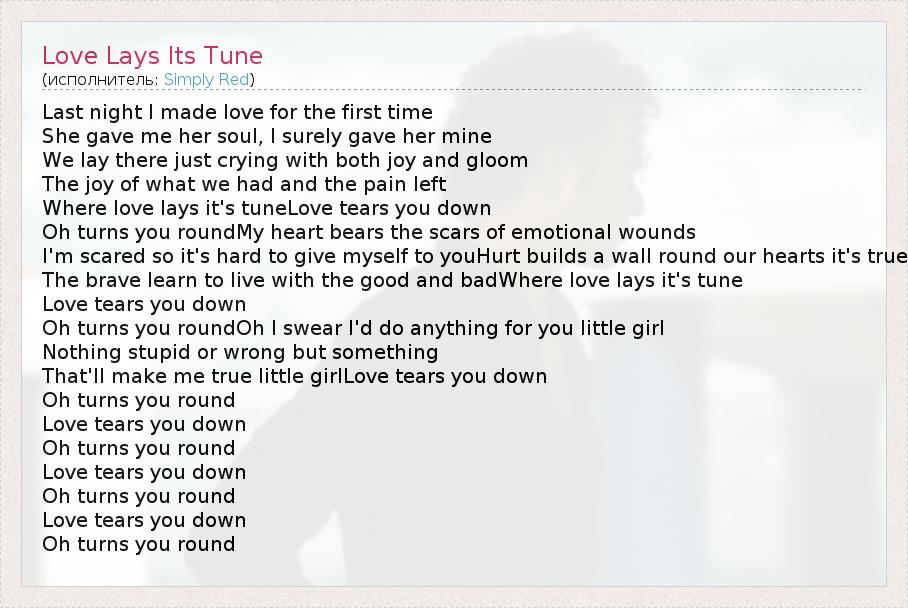 А как ты думаешь, о чем песня "Love Lays Its Tune" ?