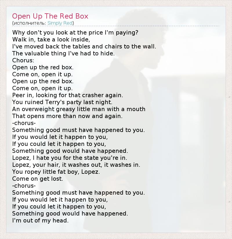 А как ты думаешь, о чем песня "Open Up The Red Box" ?