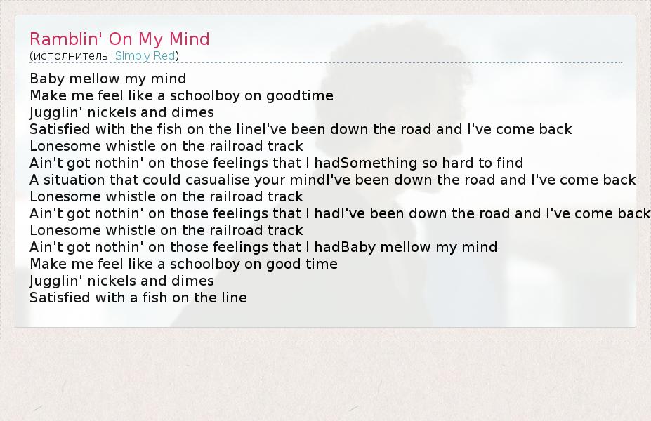 А как ты думаешь, о чем песня "Ramblin' On My Mind" ?