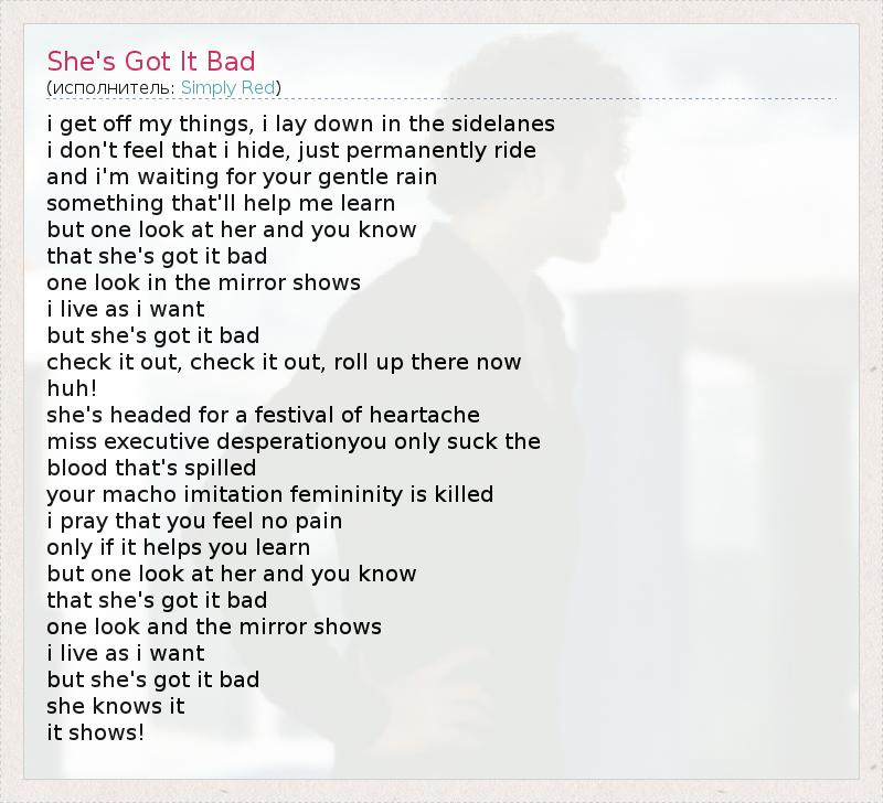 А как ты думаешь, о чем песня "She's Got It Bad" ?