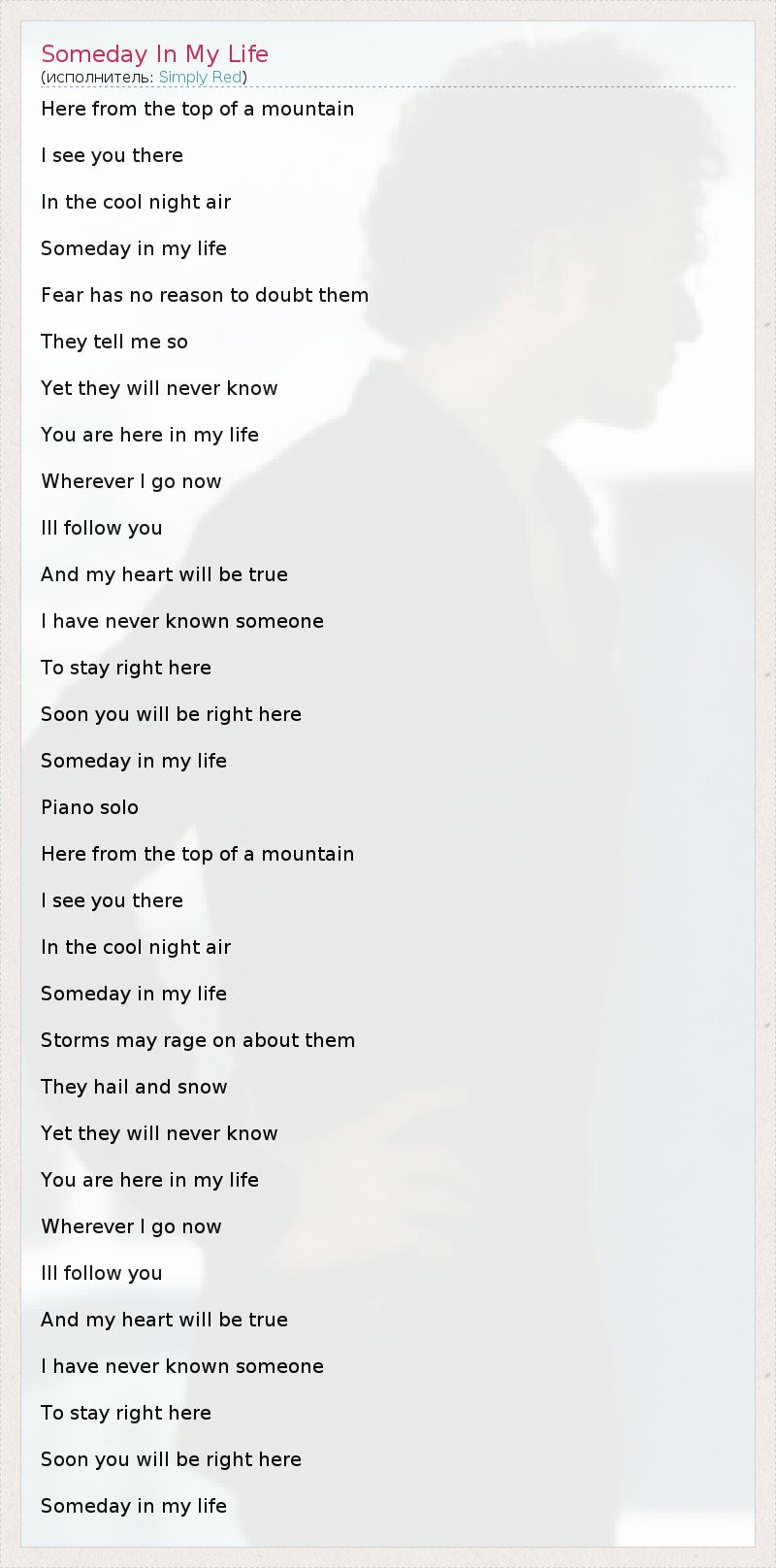 А как ты думаешь, о чем песня "Someday In My Life" ?