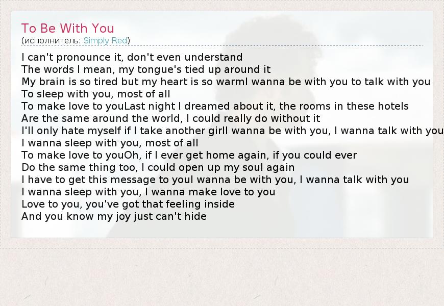 А как ты думаешь, о чем песня "To Be With You" ?