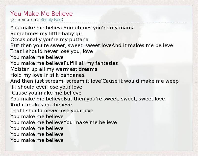 А как ты думаешь, о чем песня "You Make Me Believe" ?
