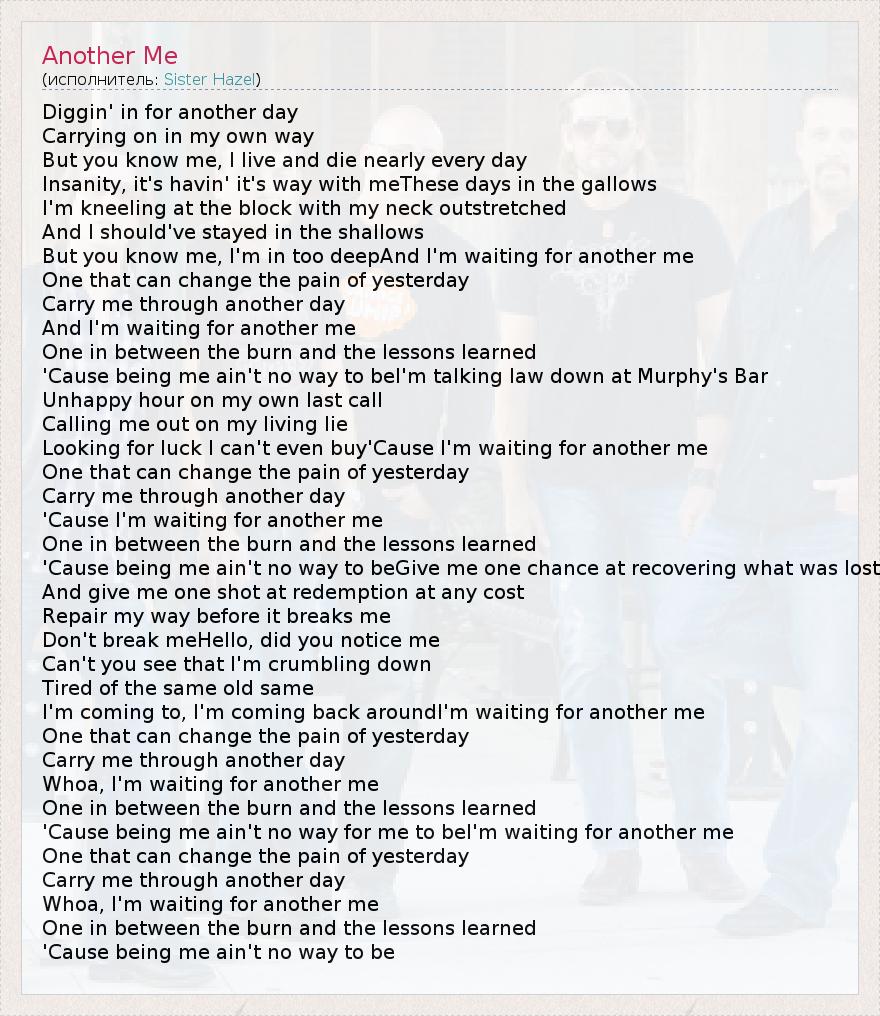 'Cause being me ain't no way for me to beI'm waiting for another me