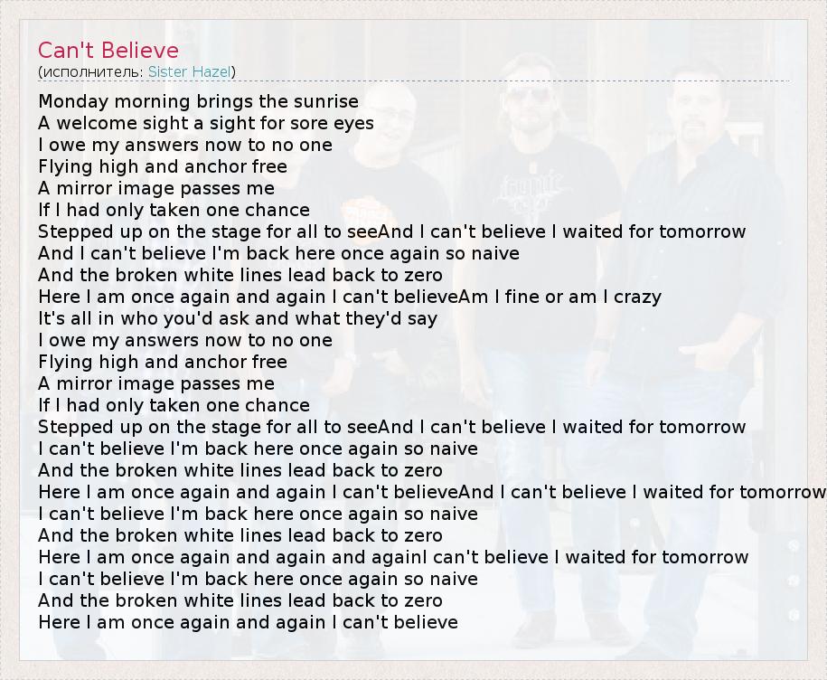 А как ты думаешь, о чем песня "Can't Believe" ?