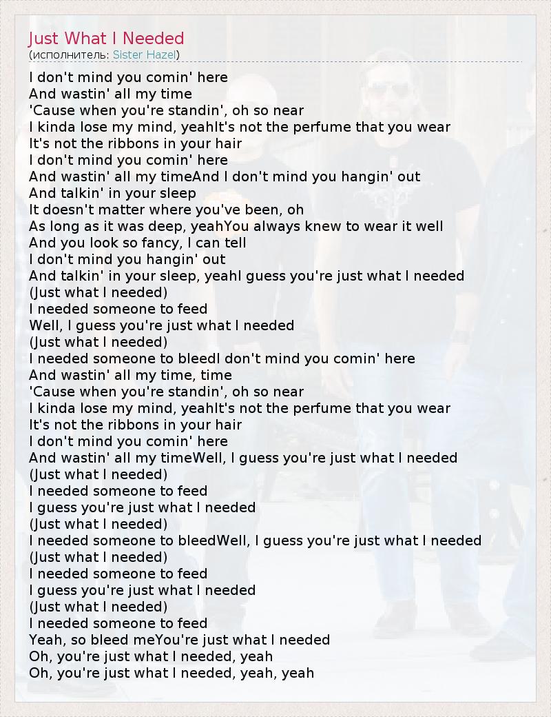 А как ты думаешь, о чем песня "Just What I Needed" ?