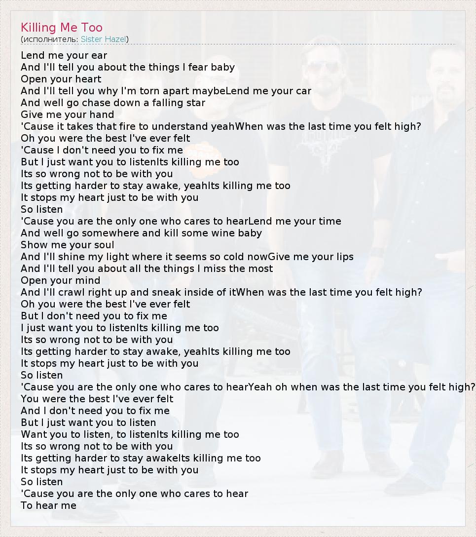 А как ты думаешь, о чем песня "Killing Me Too" ?