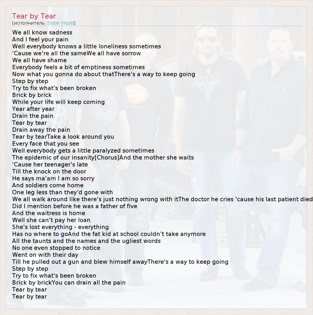 А как ты думаешь, о чем песня "Tear by Tear" ?