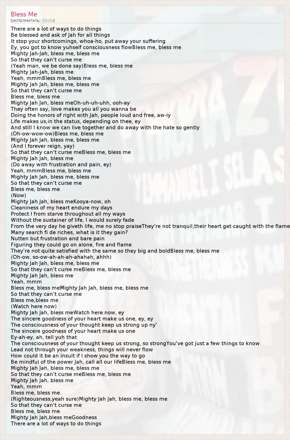 Bless me, bless meMighty Jah Jah, bless me, bless me