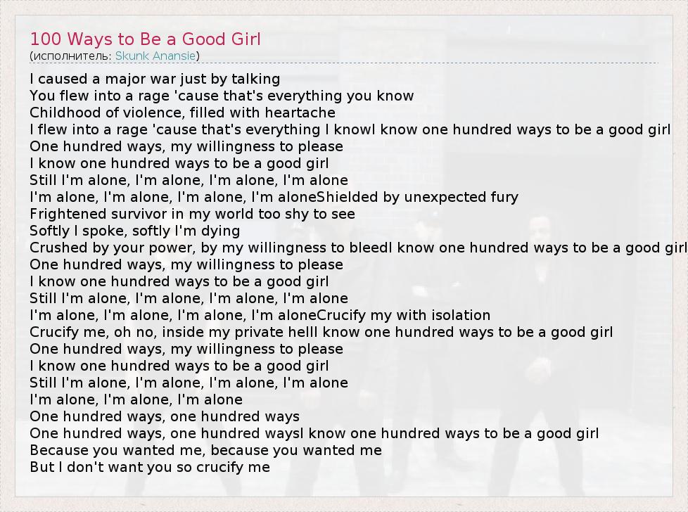 One hundred ways, one hundred waysI know one hundred ways to be a good girl