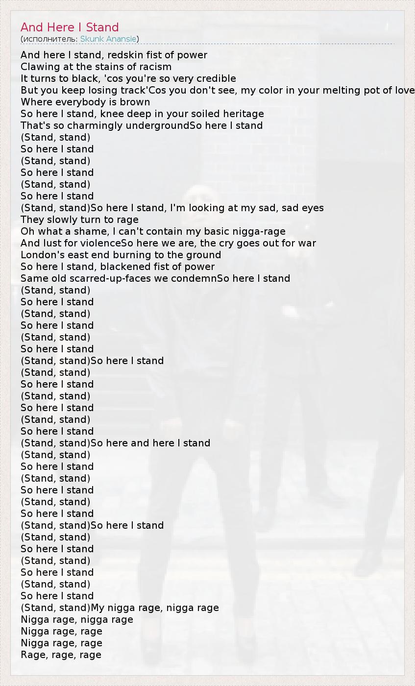 А как ты думаешь, о чем песня "And Here I Stand" ?