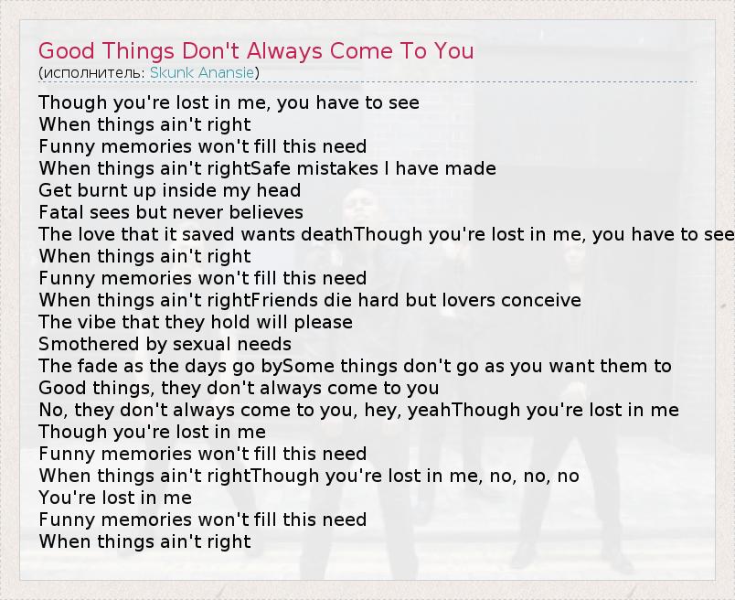 ГлавнаяИсполнителиSkunk AnansieGood Things Don't Always Come To You
