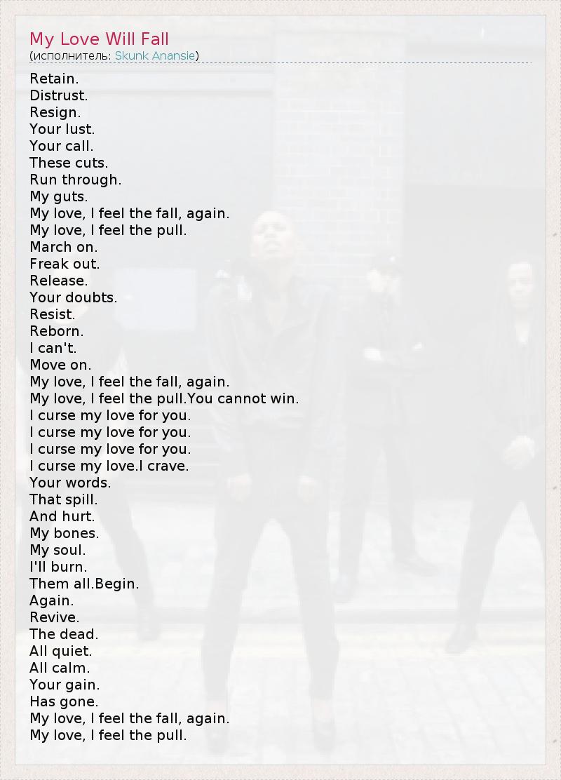 А как ты думаешь, о чем песня "My Love Will Fall" ?