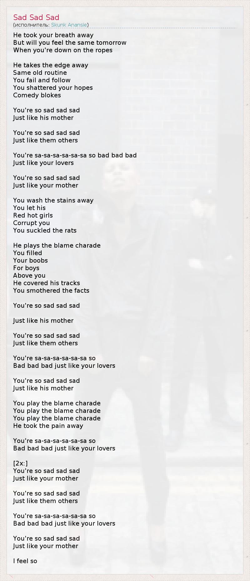 А как ты думаешь, о чем песня "Sad Sad Sad" ?