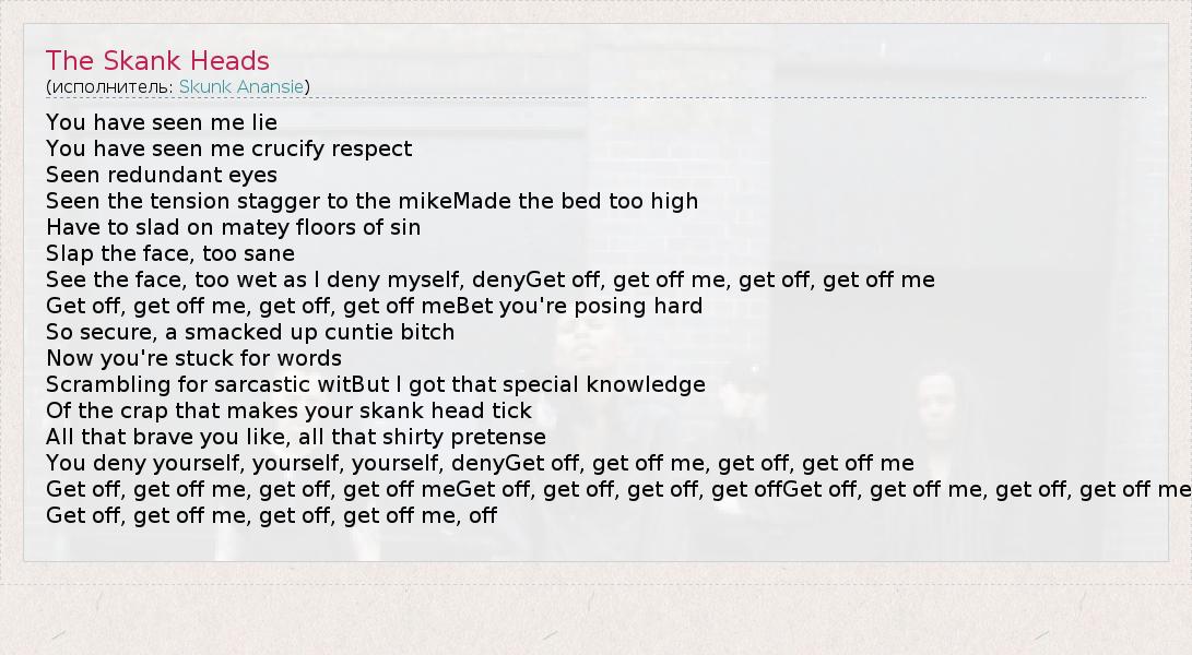 А как ты думаешь, о чем песня "The Skank Heads" ?