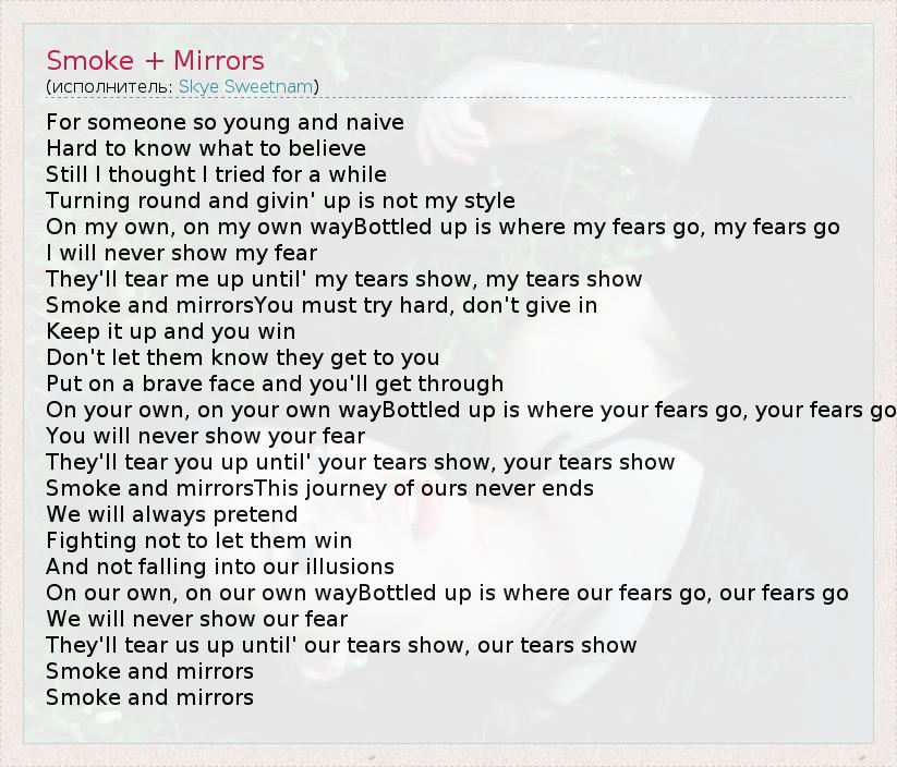 А как ты думаешь, о чем песня "Smoke + Mirrors" ?