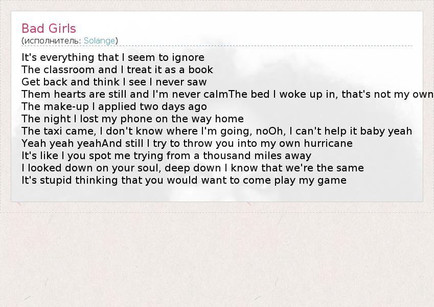 А как ты думаешь, о чем песня "Bad Girls" ?