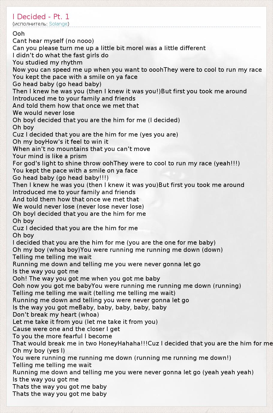 А как ты думаешь, о чем песня "I Decided - Pt. 1" ?