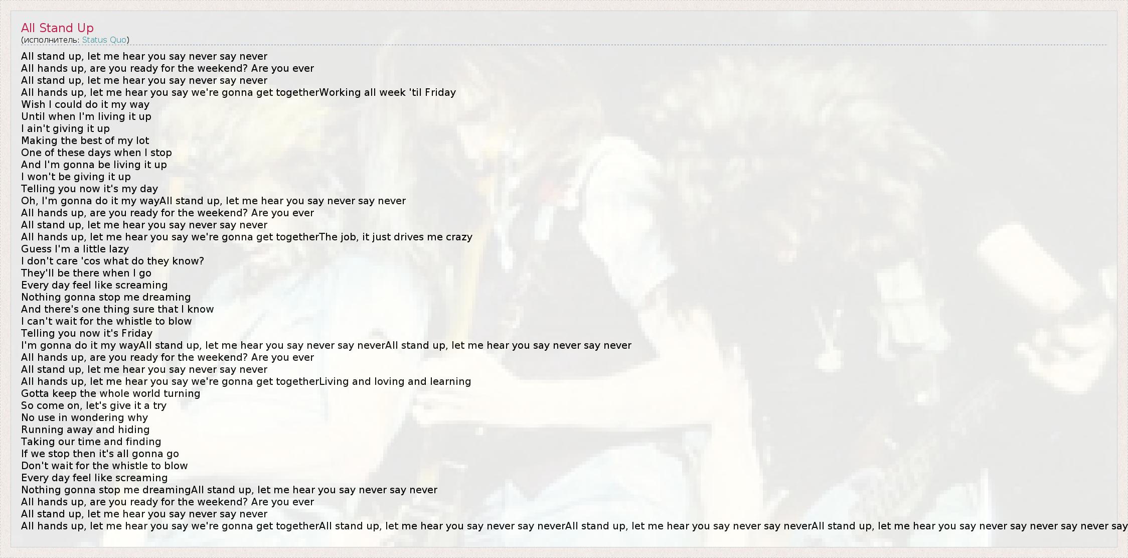 А как ты думаешь, о чем песня "All Stand Up" ?